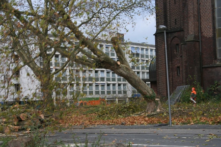 Die Stadt (sinnigerweise die Baumpflegetruppe) und einige Firmen legten sich richtig ins Zeug. Der Versuch, die Fällaktion über die Polizei und die Aufsichtsbehörde – die Bezirksregierung in Arnsberg – noch zu stoppen, lief ins Leere. Zuvor hat das Innenministerium eine Beschwerde gegen das Vorgehen der Stadt ans Bauministerium weitergeleitet, mit dem Hinweis, dieses würde sie an die Bezirksregierung weiterleiten. Wegen des Brückentags war natürlich niemand erreichbar. Kulturdezernent Townsend erklärte – in Vertretung des Baudezernenten Herrn Dr. Kratzsch – die Stellungnahme zum Bebauungsplan zu den Bäumen sei irrelevant, da die Bäume im Bebauungsplan nicht unter Schutz gestellt wurden. So trickst man Bürger aus. Die Quittung kommt hoffentlich bei der nächsten Wahl.