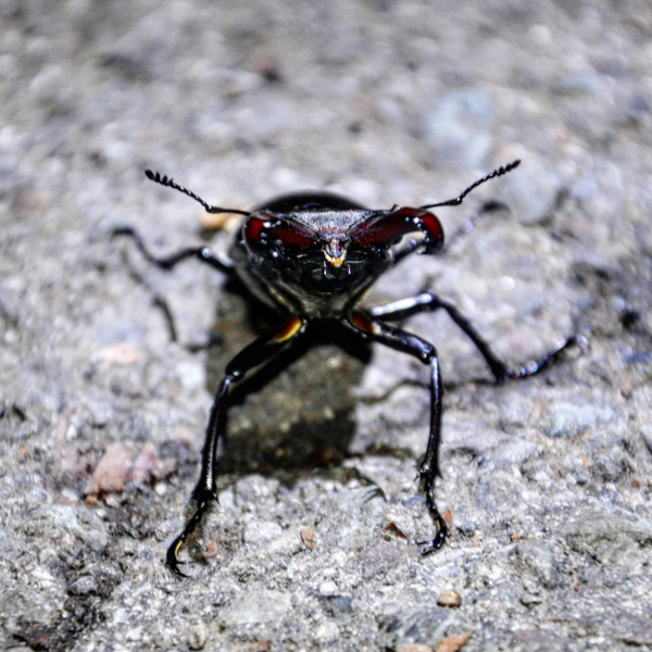 Hischkäfer sind die größten in Deutschland vorkommenden Käfer. Sie sind in Deutschland in der „Roten Liste“ in der Gefährdungskategorie 2 = stark gefährdet eingeordnet. Wir haben erstmals im Jahre 2016 im Bochumer Süden nach Hirschkäfern gesucht. Am 22.06.2016 konnten wir fünf große fliegende Käfer beobachten, von denen drei weibliche Hirschkäfer waren. Am 14.06.2017 wurden an gleicher Stelle nur zwei große fliegende Käfer gesichtet. Bei einem Beobachtungsgang am 26.05 2018 wurden nur kurz zwei große fliegende Käfer gesichtet. Ein voller Erfolg war der Beobachtungsabend am 30.05.2018 (ca. 21:15 bis 22:50 Uhr). Es wurden mehr als 10 fliegende große Käfer beobachtet. 5 davon konnten eindeutig als männliche Hirschkäfer identifiziert werden. An den Beobachtungabenden nahmen fünf bis 10 Erwachsene und mehrere Kinder teil.