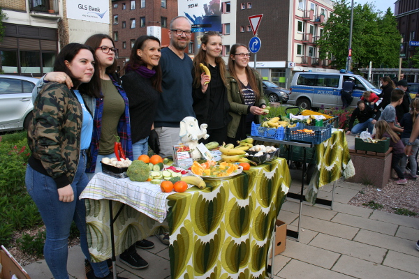 Mehr als 300 Schüler (Fridays for Future) und Erwachsene (Parents for Future) nahmen an der „Tanzdemo“ teil und hatten an Musik und Tanz Spaß. Die auffällige Demo erzeugte viel Aufmerksamkeit. Wir vom AkU haben 600 Infozettel verteilt um für ein Klimaschutzprojekt Stimmen (Herzen) bei der Stadtwerke-Förderaktion „Dafür schlägt mein Herz“ zu sammeln.